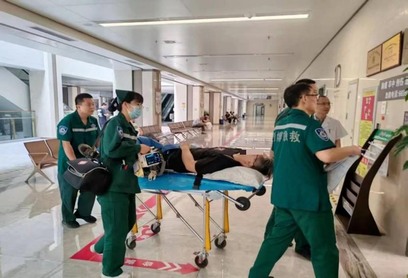14:45,救护车出发,医护人员持续监测生命体征,提前完成急诊冠脉造影预谈话。途中患者突发室颤,立即电除颤并心肺复苏,成功恢复窦性心律。